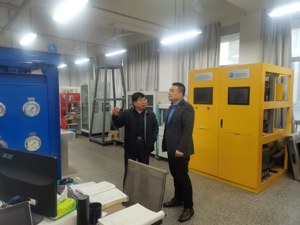 座谈会后,贾向锋、雷万征在刘永红陪同下参观学院海洋石油装备实验室,详细了解了深水防喷器组及其控制系统和水下全电采油树控制系统。
