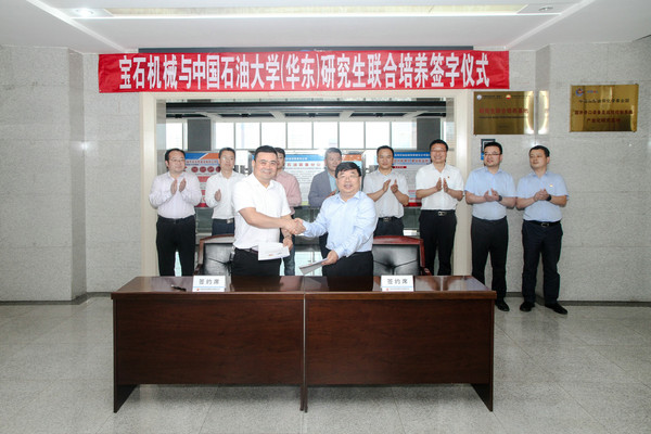 5月25日,中国石油大学(华东)、中国石油宝鸡石油机械有限责任公司(以下简称宝石机械)海洋石油装备分公司研究生联合培养基地签约与揭牌仪式在陕西宝鸡举行,威廉希尔体育院长刘永红,宝石机械副总经理、总工程师张斌,宝石机械海洋石油装备分公司总经理贾向锋等出席仪式。