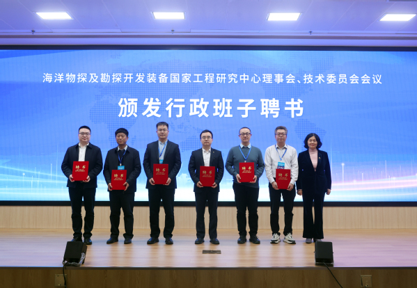会议为海洋物探及勘探开发装备国家工程研究中心理事会理事、技术委员会委员、行政班子颁发聘书。