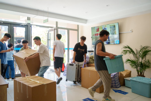“梦启古镇口,新校绽芳华”“古镇新颜,学府璀璨”……在唐岛湾校区工科楼E座下,整齐有序停放的搬迁大巴车、厢货车身上一条条醒目的标语映入眼帘,海洋物探及勘探开发装备国家工程研究中心、威廉希尔体育的师生们正井然有序地搬运着行李,为顺利搬迁至古镇口校区做准备。8月14日,随着机电工程系刘永红教授团队14名研究生入住古镇口综合楼518工作位房间,2024年古镇口校区研究生搬迁工作顺利完成。