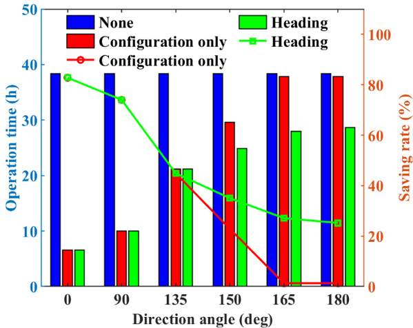优化结果表明,通过优化作业参数,特别是优化撤离航向,可以缩短作业时间。当航向角较大时,最优防台风策略是悬挂所有隔水管沿变路径撤离;航向角较小时,悬挂所有隔水管沿直线路径撤离。此外,防台风撤离策略的因素分析表明,所提出的优化模型和方法具有较强的适用性和显著的优化效果。