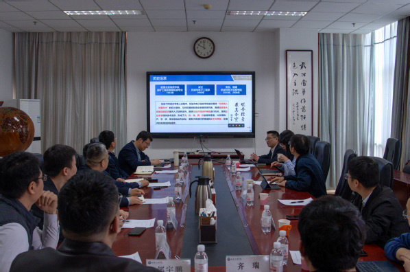 蔡宝平、李海林对宁伏龙一行来院交流访问表示热烈欢迎,双方围绕学科及平台建设、人才培养、内部管理等议题展开深入交流。文国军从学院历史沿革、学科专业、师资情况、学生规模、学院平台、科学研究、科研团队建设等方面介绍学院基本情况;殷晓康围绕学院概况、学科建设、科研平台、专业设置、科学研究及国际交流合作等方面,介绍学院发展现状。