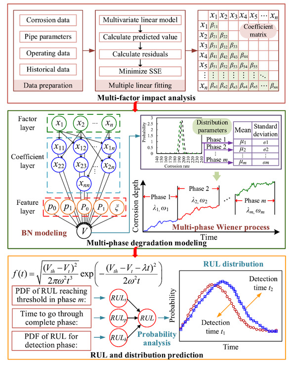 腐蚀是影响管道完整性管理的最重要因素,它可能导致管道损坏、生产中断、环境污染甚至爆炸。然而,由于腐蚀因素耦合性及退化参数不确定性特征,实施主动腐蚀管理是困难的。为此,本文提出了一种全新的管道腐蚀预测框架。