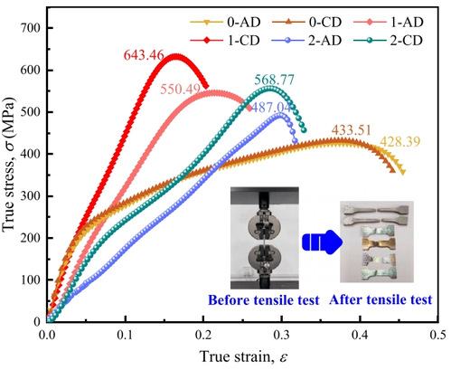 主动铲旋旋压工艺在使晶粒细化、均匀化及隆起区域晶粒纵横比增加同时,促使成形区内极限抗拉强度显著提高,其中环向力学性能提升大于径向,σUTS1-CD提高了48%,σUTS2-CD提高了31%。另外,本文深化探究了该工艺的金属流动特性、应力应变状态及不同区域的分布演变和微观机制等内容,为带筒薄盘件的一体化成形提供了研究新思路。