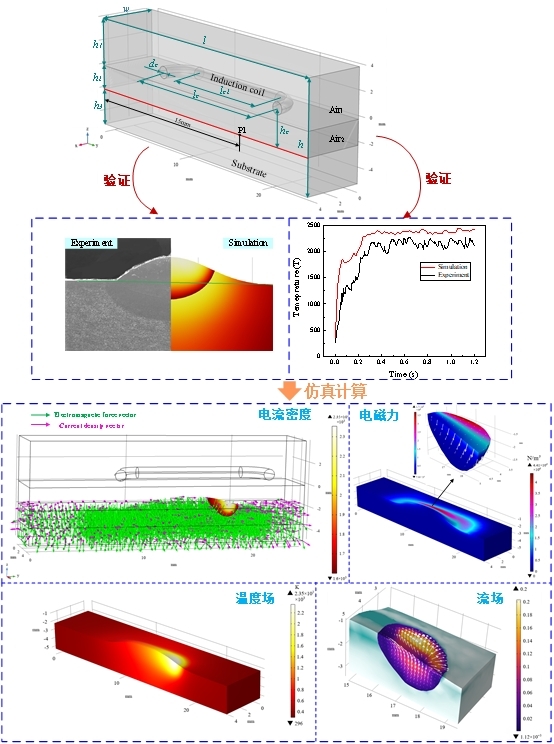 超高频感应热源作为激光沉积制造中常用的辅助热源,在复合沉积过程中具有降低熔池温度梯度、细化微观组织尺寸及缓解成形件应力集中的作用。为探究同步“滑板型”超高频感应热对激光沉积过程的影响,采用数值模拟的方法,构建了激光/感应复合沉积过程的电磁-热-流多物理场耦合模型,着重分析了不同感应热源参数下熔池的温度演变、流体流动及凝固特性,明晰了交变磁场对熔池温度与流速的作用机制,揭示了洛伦兹力的搅拌作用对成形件微观组织与性能的影响规律。为超高频感应热源的工业应用提供了理论基础。